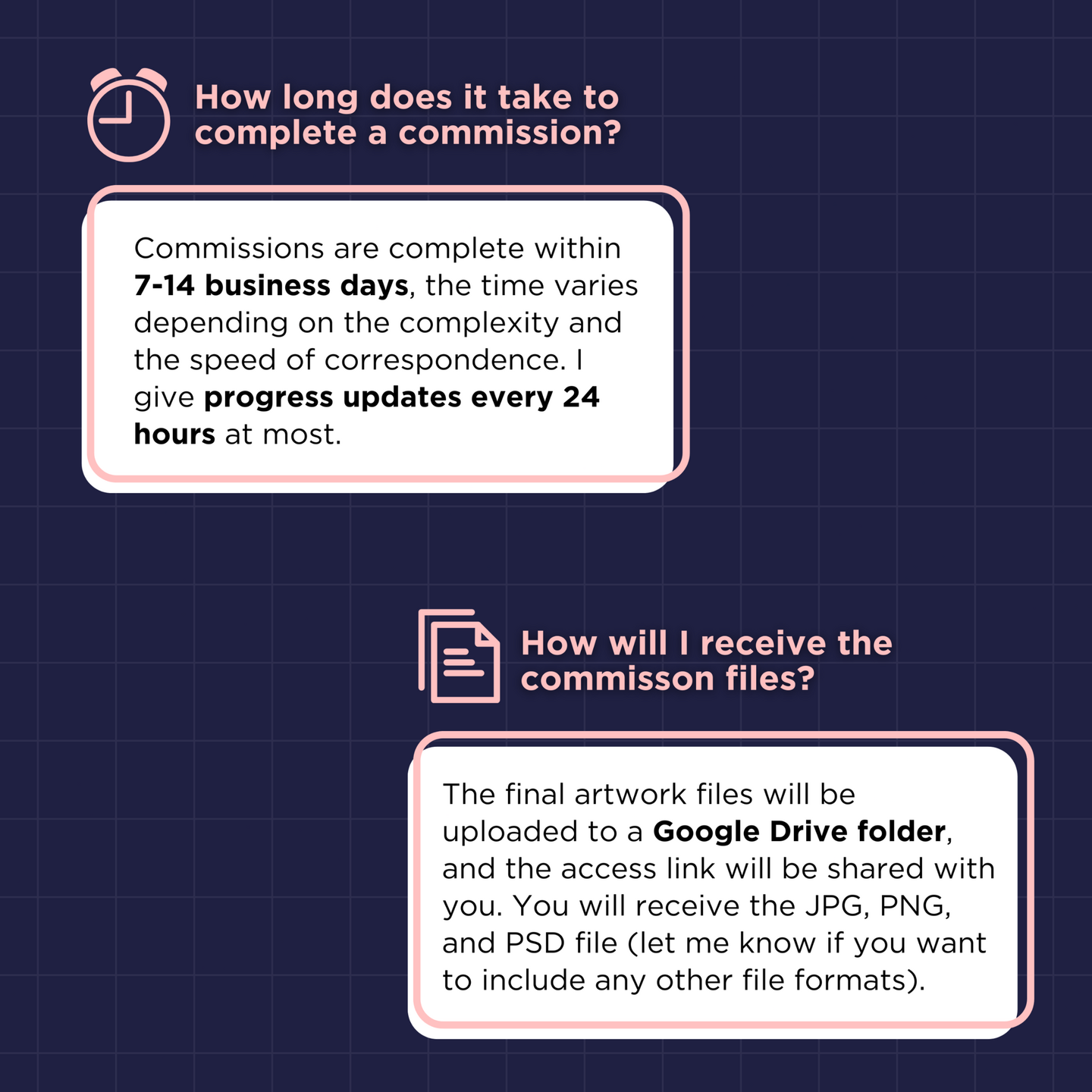 Welcome to my comms zone! Here you can view my price list and have access to real time updates on my current commissions.Time zone: GMT+7